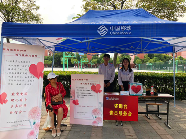 本网讯(通讯员:谷学颖)为切实肩负起服务群众,凝聚群众的职责,在2019级新生开学日,财会与金融学院党员志愿者身着统一校服,佩戴党徽,用饱满的热情和高度负责的态度,协助新生进行入学报到,为新生和家长悉心解答党员发展等相关党内制度和规定,为迎新现场增添了一抹亮丽的色彩。