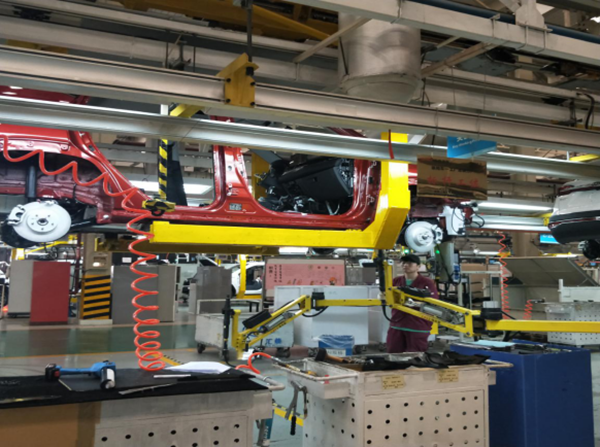 最后,参观团队受邀前往江淮汽车集团总装车间。据工作人员介绍,总装车间主要任务是借助高精度计算机操作系统和自动化流水线来完成汽车各零部件的组装工作;在江淮,广泛而深入地运用高新技术助力汽车研发、生产是集团孜孜以求的发展目标。