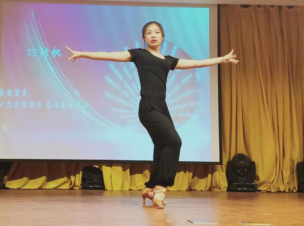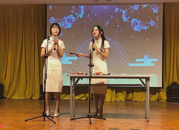 胡梦婷和章陈用细腻的嗓音带来的《失眠飞行》,仿佛将现场师生带入美丽的塞纳河畔,一开始就将比赛拉入一个轻松愉快的氛围;由武梦婷带来的舞蹈串烧将比赛带入高潮,她铿锵优美的舞步,舒展灵活的动作,舞出了青春的活力,舞出了时代的风采。凭借生动有趣的情节和绘声绘色的表演,张颖带来的相声《卖吊票》引得在座师生捧腹大笑,掌声阵阵。张蝶带来的小品《被冤枉的记忆》,肢体语言表达准确自如,同时让在座师生在欢笑中认清事实,明白真理。
