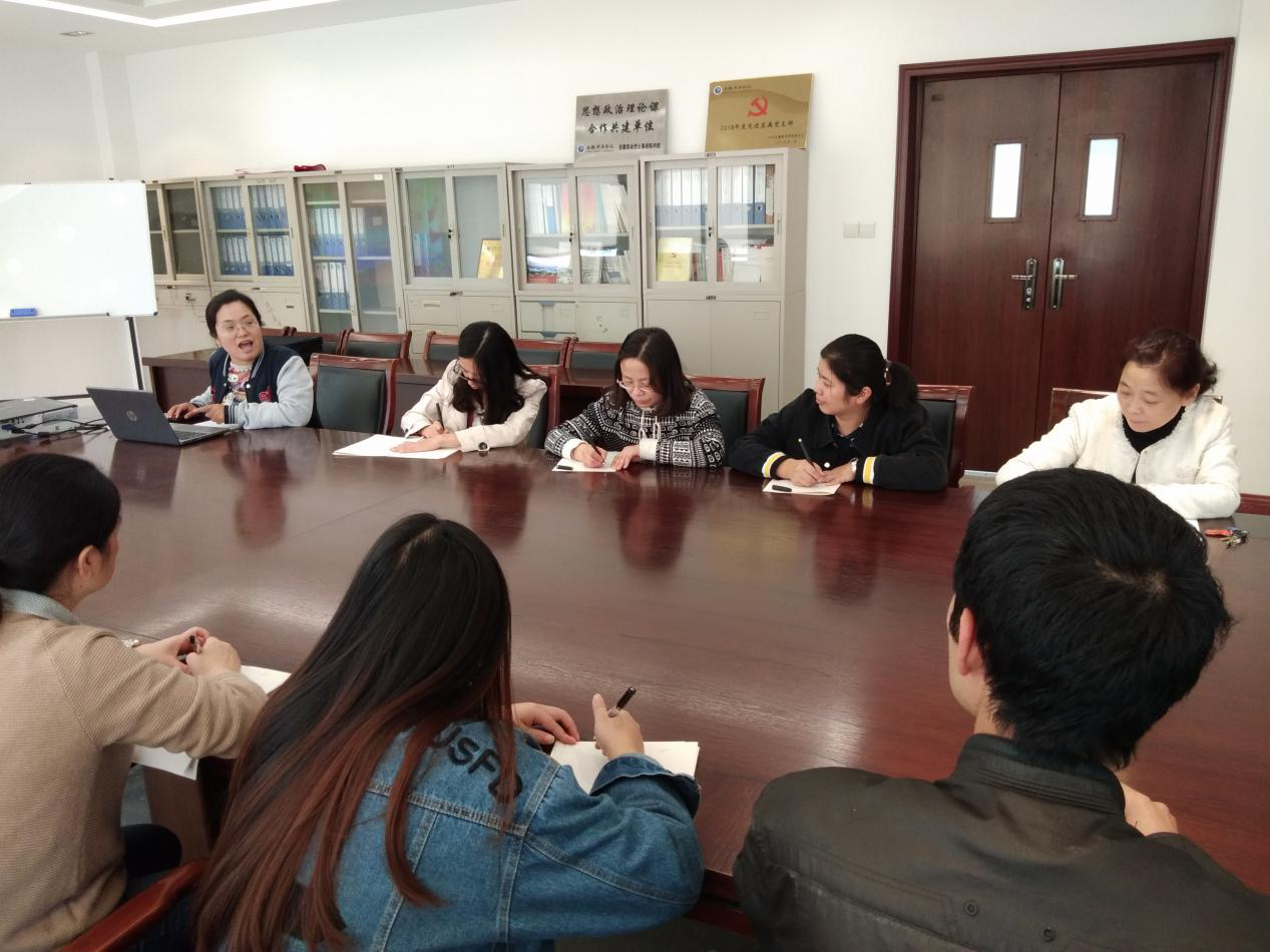 本网讯(通讯员:沈跃龙)11月11日中午,马克思主义学院组织全体教师深入贯彻学习党的十九届四中全会精神,副院长董丽娟主持。