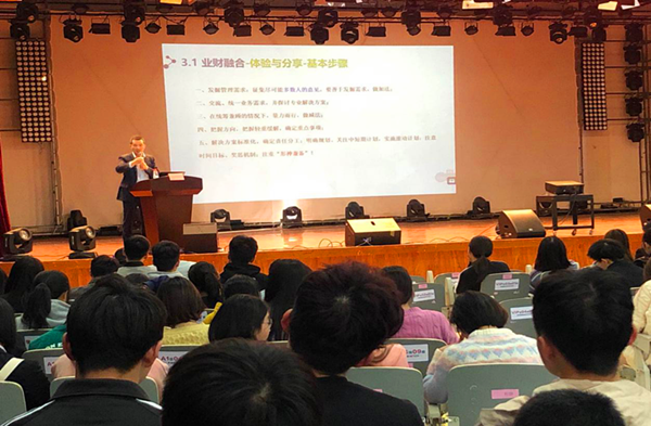 万和国首先就经济社会发展历程做了回顾介绍,并阐述对财务的相关影响,结合自身工作经历提出财务人才的发展与自我定位,论述当下财务热点“业财融合”的内涵及要求,为同学们指明财务人的未来发展方向,介绍前沿思想,并鼓励同学们打破惯性,立即行动。万和国精彩的讲座赢得了现场阵阵掌声。