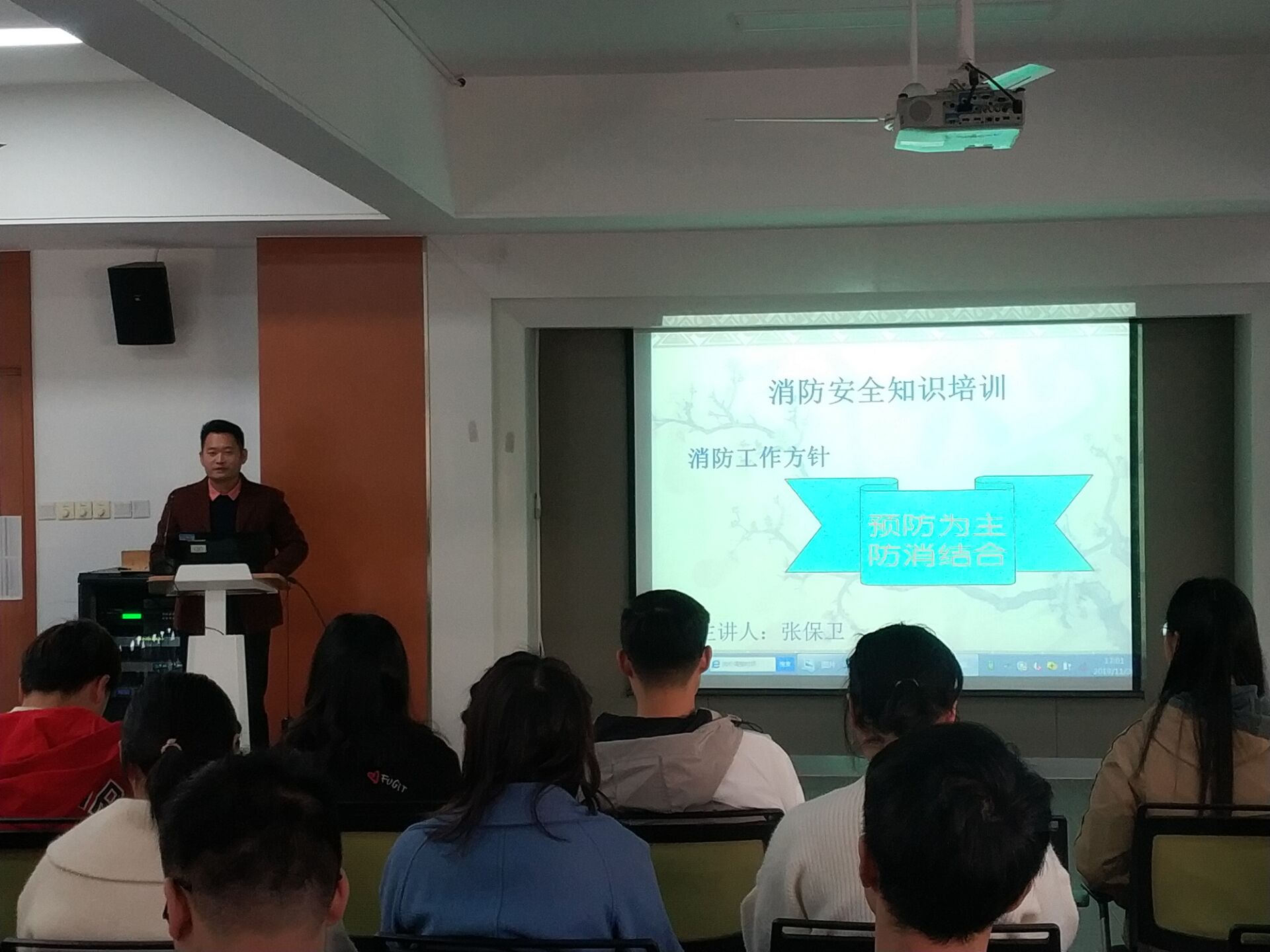 本网讯(通讯员:汪涵涵)为了更好的组织学生参加消防安全宣传月活动,树立消防意识、熟悉消防知识、掌握消防自救能力。11月20日中午,国际教育学院邀请37000cm威尼斯保卫处副处长张保卫为学生干部和寝室长做消防安全知识讲座,讲座由行政兼学管秘书汪涵涵主持。