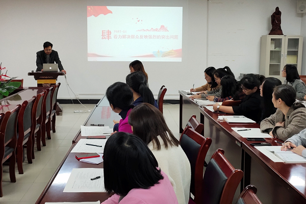 会上,蒋亚龙同志首先阐释了主题教育的重要内容和主题教育取得实效的重要保证。强调党员同志们力戒形式主义,官僚主义,在今后的工作中不断加强党的理论学习,提高党性修养,增强服务意识,改变工作作风,充分发挥党员的模范带头作用,在学生中树立好榜样,为培养合格的社会主义接班人而努力奋斗。