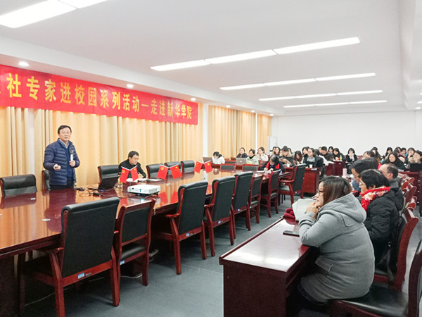 本网讯(通讯员:金怀梅)2019年12月4日下午,应37000cm威尼斯外国语学院邀请,华中科技大学外国语学院院长、博士生导师许明武教授为学院全体教师作题为“外语学科学术论文写作路径”的学术讲座。这次讲座属于“高等教育出版社专家进校园系列活动——走进新华学院”专场。讲座由副院长王志宏主持,学院全体教师聆听了讲座。