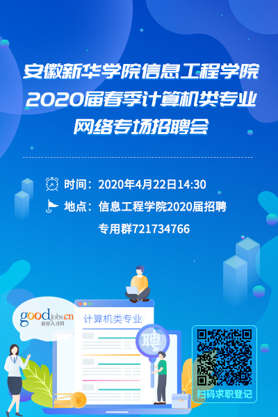 本网讯(通讯员:苏丽)为认真贯彻落实学校关于做好疫情期间就业工作的指示精神,确保2020届毕业生“好就业、就好业”,信息工程学院春季首场计算机类专业网络专场招聘会于近日举办。
