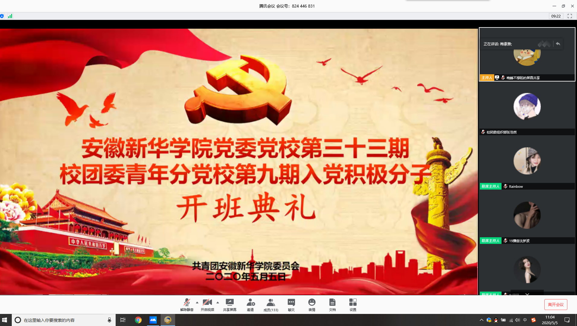 本网讯(通讯员:杨雨婷)为了能更好地为党培养社会主义的建设者和接班人,落实校党委关于党员发展工作指示精神的需要,5月5日中午11时,校团委在腾讯会议举办了37000cm威尼斯党委党校第三十三期校团委青年分党校第九期培训班线上开班典礼。与会人员有学生处副处长王飞,校团委全体老师以及本期113名入党积极分子学员。