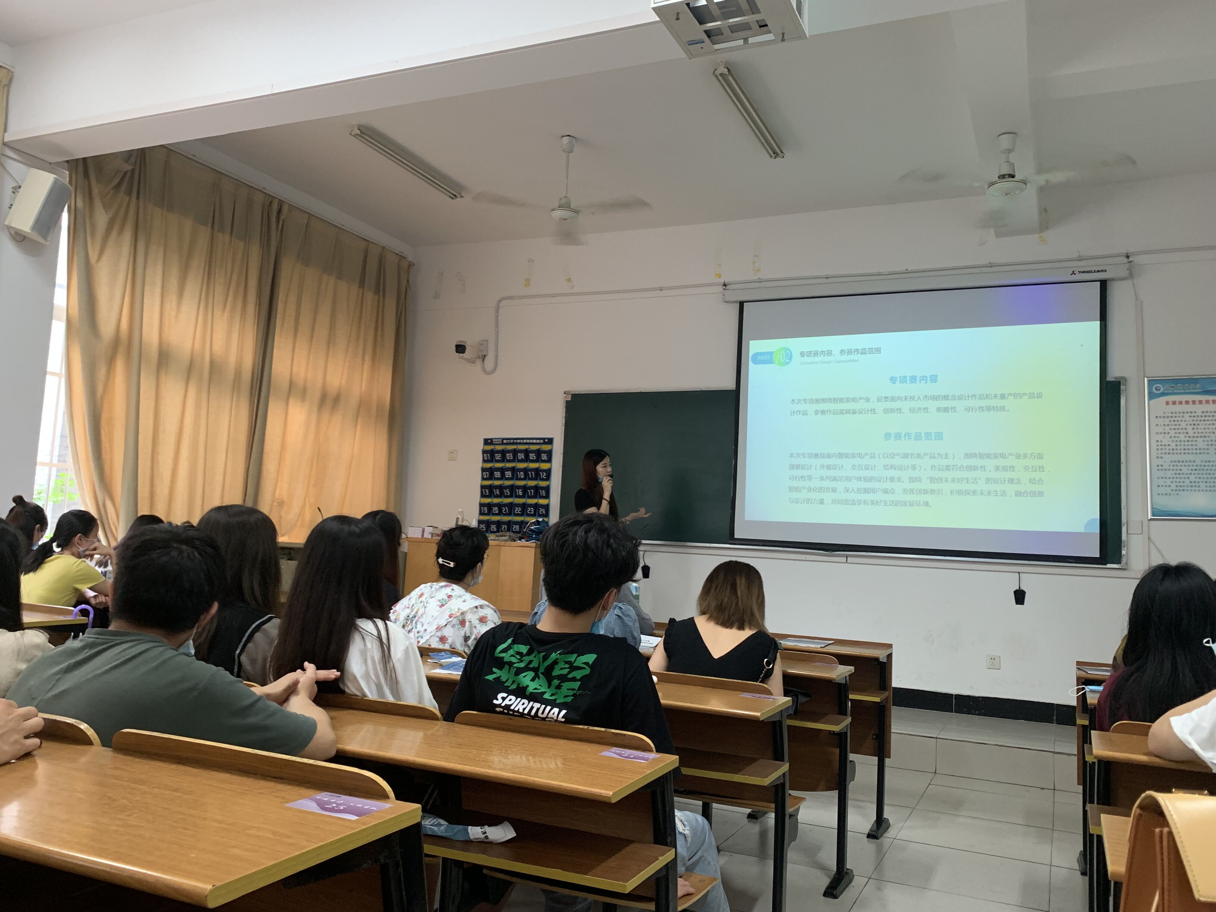 安徽省第七届工业设计大赛由多家单位举办专项赛,各专项赛举办单位自主开展评奖。本次《安徽省第七届工业设计大赛“奥克斯杯”当涂县智能家电专项赛》由马鞍山江东工业设计发展有限公司承办,宣讲会上,设计总监胡婉婷仔细讲解了本次专项赛的内容及相关要求。并结合《智能空调市场调研报告》,通过需用户形态观察、市场研究数据、品牌分析及拓展、设计趋势等方面的全面解读,帮助同学们更进一步的了解专项赛,把握设计方向,设计点,了解智能空调的设计要素和市场需求,了解产品设计中的市场调研系统的方式方法。