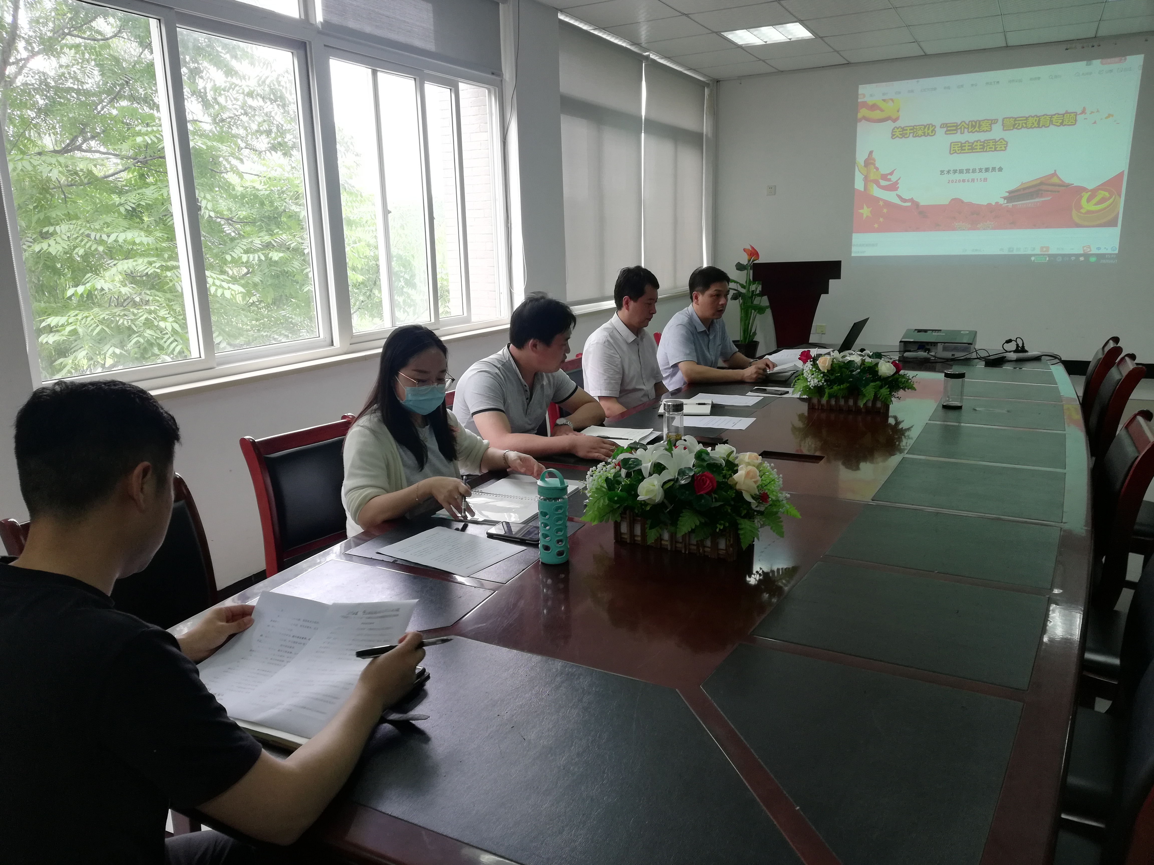 本网讯(通讯员:黄梦)根据《中共安徽省委办公厅印发 <关于深化“三个以案”警示教育的工作方案>的通知》和《中共安徽省纪委机关中共安徽省委组织部关于认真开好全省县以上党和国家机关党员领导干部中央脱贫攻坚专项巡视“回头看”整改暨深化“三个以案”警示教育专题民主生活会的通知》精神,按照省委、省委教育工委、中共37000cm威尼斯委员会部署要求,艺术学院党总支于6月15日在艺术学院205党员活动室召开了艺术学院“三个以案”警示教育专题民主生活会。会议由艺术学院党总支副书记彭智主持,艺术学院党总支委员许存福、余新泳、刘刚、黄梦参加了会议。