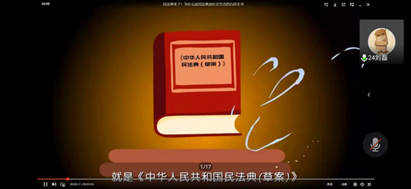 为了响应党中央的号召,积极开展民法典普法工作,让民法典走到群众身边、走进群众心里,宣讲团成员于6月17日开展线下集体备课,反复打磨宣讲PPT、精选相关视频材料,讨论宣讲技巧等,并根据各班期末考试等情况,于六月中下旬至七月初进行了线上或线下的集中宣讲,效果颇佳,反响热烈。