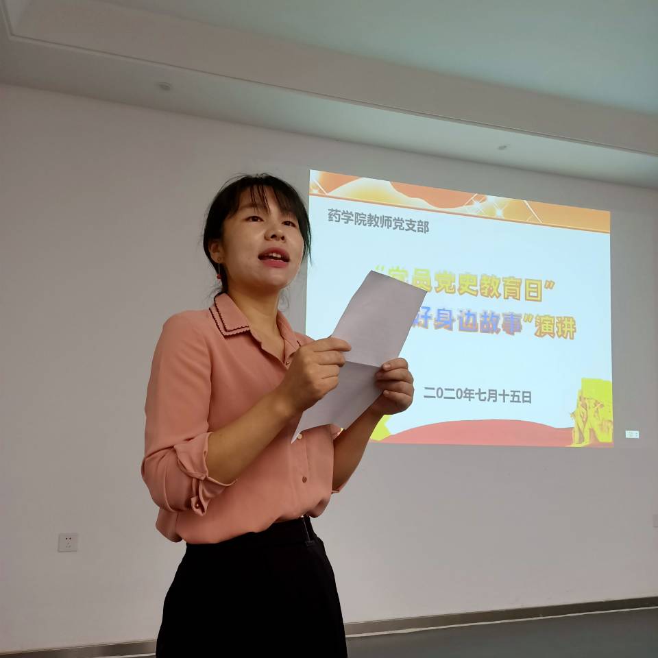 本网讯 (通讯员:刘自平) 7月15日,药学院教师党支部全体党员在在教4-106党员活动室开展“党员党史教育日”之“讲好身边故事”演讲活动。