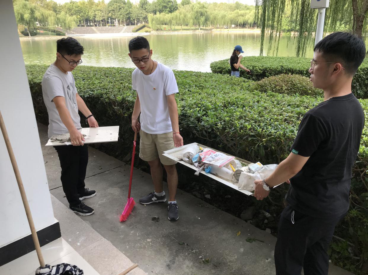 2020年9月9日下午,财会与金融学院全体学生党员佩戴党徽,手拿扫帚前往27#新生宿舍和财金教学楼进行志愿卫生清扫活动。