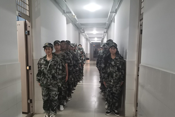 尽管今天是在室内训练,空间狭小,行动不便,但是同学们丝毫没有松懈,他们在教官们严格的要求,整理军容,端正军姿,并不时由教官亲自示范,手把手纠正基本动作。同学们在教官的带领下,动作逐渐规范,军姿更加挺拔。在军训中,恶劣的天气也给军训工作也带来了许多困难。同学们初来乍到,水土不服,加上部分学生体质略差,军训队伍中已经出现了空缺。尽管身体不适,但他们从未想过放弃,他们有着旁人无法想象的意志力,身体稍有好转便回归连队坚持训练。