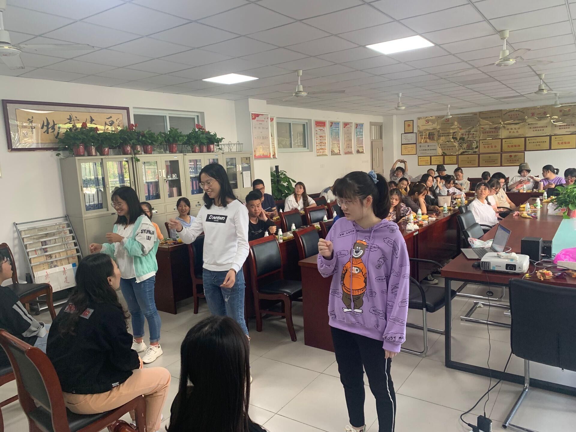 随后,团总支学生会的同学策划了“九宫格绘图,画我家乡美”等互动环节,同学们通过在九宫格纸张上面画出各自家乡的美食、民俗风情、个人爱好等,与同学们一同分享交流,拉近了彼此之间的距离。此外还有比如“你来比划我来猜”、“击鼓传花”、“谁是卧底”等各具特色的集体游戏活动,让整个中秋茶话会充满了欢声笑语。