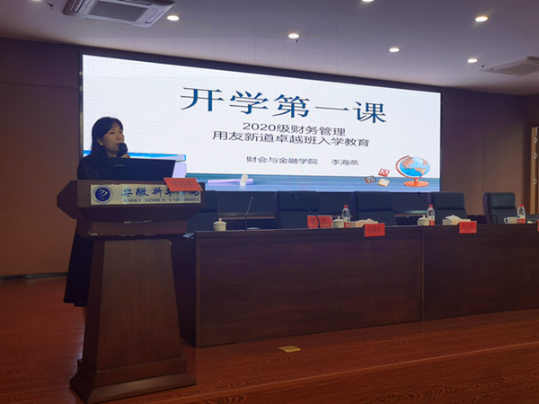 本网讯(通讯员:邓洁、周杭群)为帮助2020级新生更快地适应新环境、了解专业发展、明确学习目标,更好地规划自己的大学生涯,财会与金融学院于2020年9月15日-10月14日,陆续开展了本科和专科各专业新生入学教育活动。特别邀请新道科技股份有限公司教育服务总监王万德、慧科教育集团特聘讲师周忠良教授和国元证券股份有限公司杨杰博士参与财务管理专业、互联网金融专业和经济与金融专业入学教育讲解,系主任李海燕、系副主任邓洁、专业负责人王玮、郭彪、王磊、蒋毓萍也参与各专业新生入学教育活动。