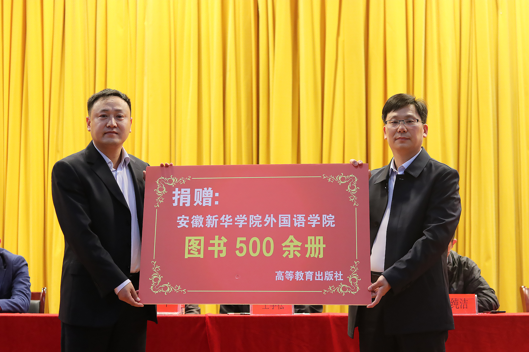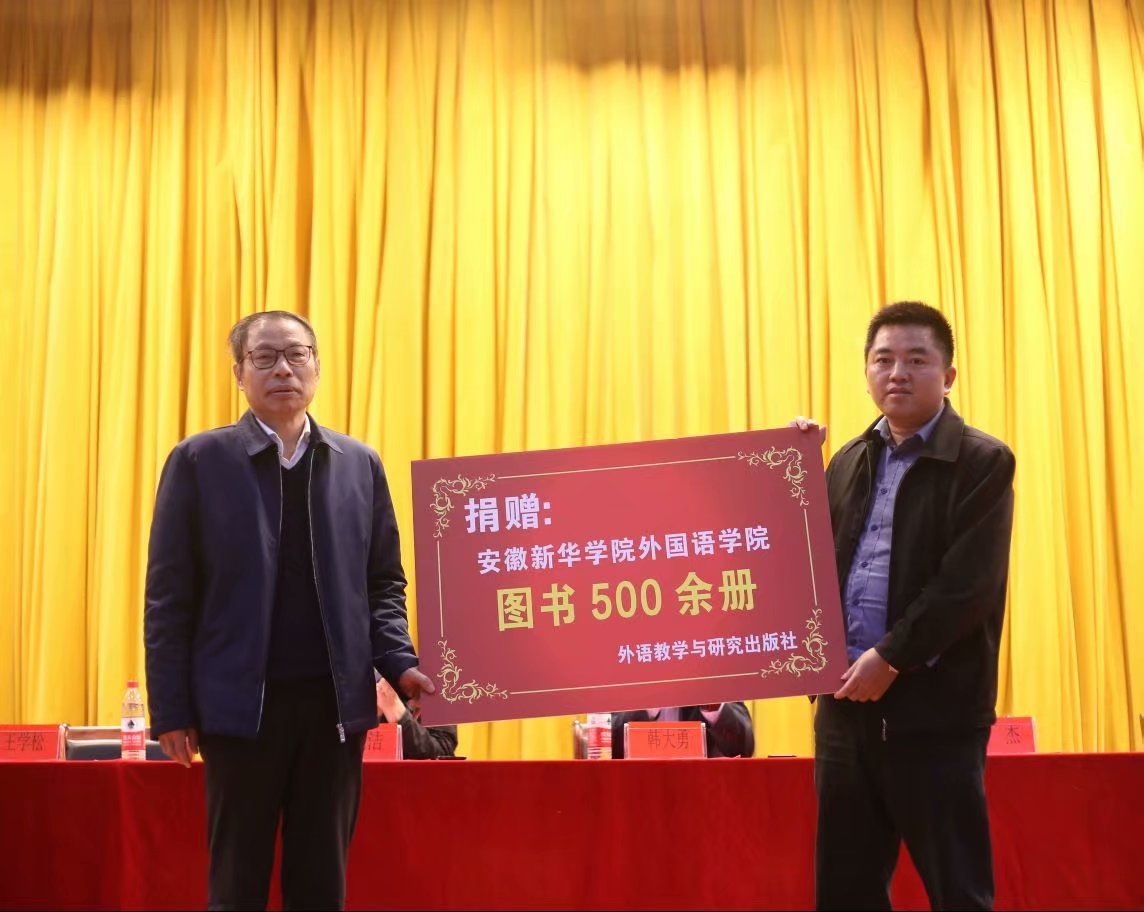 本次的读书工程也得到了外语教学与研究和高等教育的两大合作出版社的大力支持,他们给外国语学院捐赠了一批深受学生喜爱的英文图书,出版社代表王学松和韩大勇依次进行发言并预祝外国语学院读书工程举办成功。