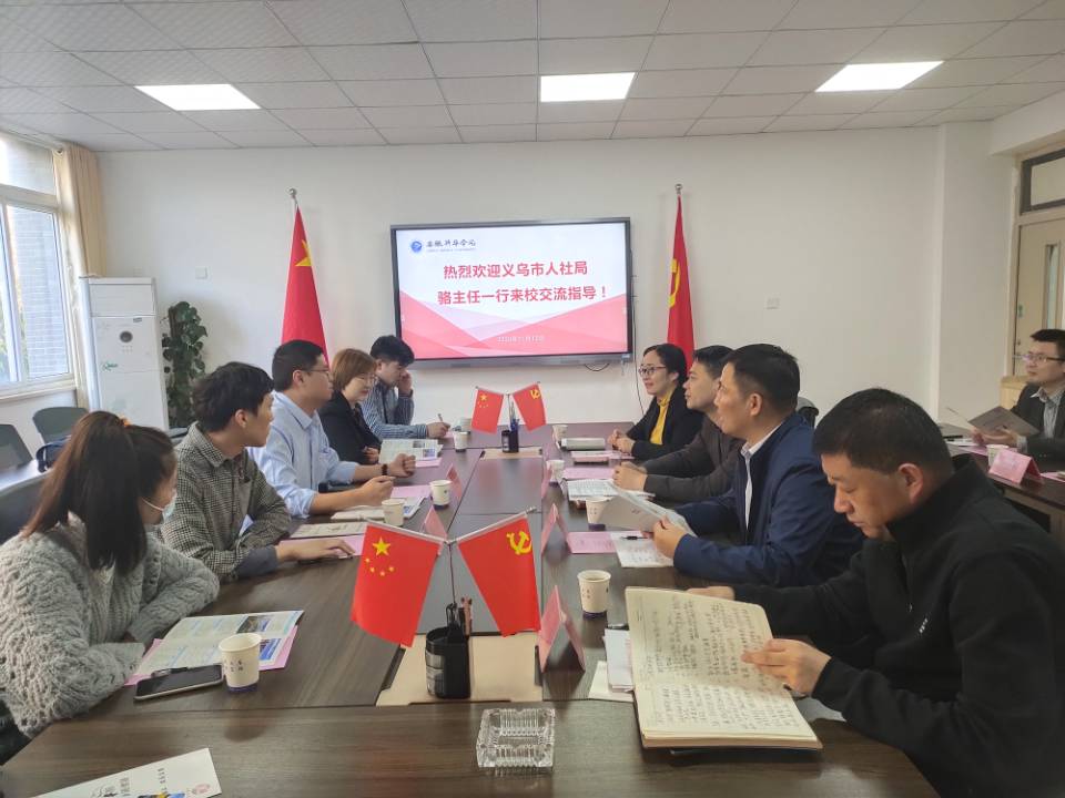 本网讯(通讯员:周刘湘 徐佩佩)为切实做好威尼斯官网毕业生就业服务工作,积极搭建用人单位与毕业生线下面对面的交流平台。11月12日,义乌市人社局人才管理中心副主任骆旭伟率各招聘单位参加由威尼斯官网举办的“创业创新 圆梦义乌”专场招聘会。37000cm威尼斯校长助理汪俊东、盛晓青;学生处处长王飞;中国东方教育创就业部副总经理赵群、经理陈永佳以及部分二级学院行政负责人接待了骆旭伟一行。