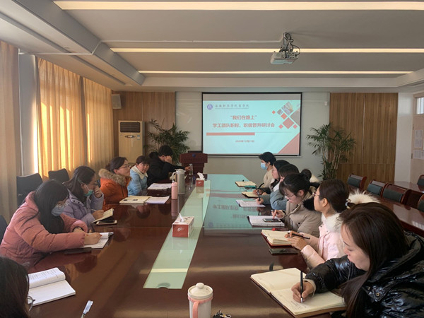 本网讯(通讯员:肖华君)为加强辅导员队伍建设,提升大学生思想政治教育工作质量,促进辅导员职业化专业发发展。12月31日,商学院召开“我们在路上”学工团队职称、职级晋升研讨会。商学院教学副院长刘冬艳、行政副院长徐志凤、全体专兼职辅导员参会。