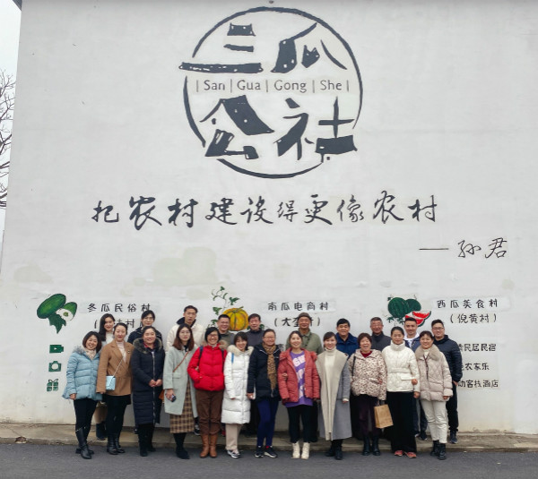 合肥市三瓜公社小镇是以发展电商产业为核心、以“互联网+三农”“互联网+农村一二三产融合发展”为路径的商贸文旅类小镇。已入驻企业90家左右,吸纳就业2000人,完成特色产业投资2亿元,年接待游客人数600万人次。是安徽省以电子商务带动乡村振兴的重点实验小镇。文传学院一行通过对半汤书屋、半汤乡学院、有间客栈、小镇客厅等地实地参观并参与体验,调研组了解到三瓜公社贯彻落实“把农村建设的更像农村”的发展理念,依托互联网并整合民俗文化、休闲旅游以及农业种植等多方面资源,重点打造文化村、美食村、电商村三大主阵地,从而凸显乡村自然的人文特色。从打谷场到烤茶馆、两间半,彰显了浓郁的地方特色与乡土气息,打造了具有历史记忆和地域特色的古村落。