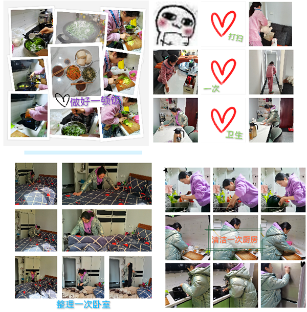 同时,财金学子积极践行“五个一”行动,做好一顿饭、打扫一次卫生、整理一次卧室、清洁一次厨房、清洗一次衣物。在劳动中明白了“一屋不扫,何以扫天下”的道理;在洗洗刷刷中不仅洗去了尘埃,洗去了烦恼,还洗出了幸福和快乐;在整理房间中发现了劳动创造的美好;在贴春联、包馄饨中品尝到了过年的味道,感受到日子的红红火火。