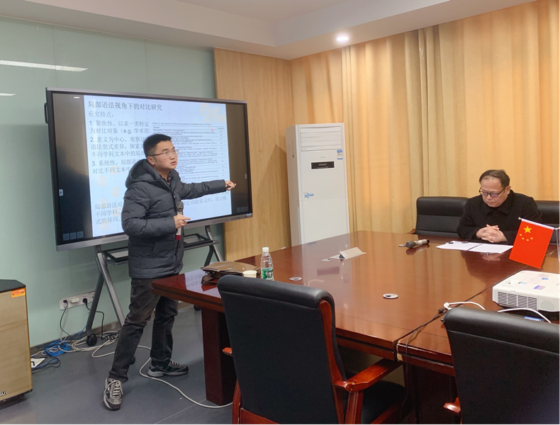 首先,周平代表外国语学院全体教师欢迎张磊的到来。他介绍,张磊博士2018年毕业于北京航空航天大学,获文学博士学位,研究领域为语料库语言学、局部语法研究、学术话语分析。现就职于安徽财经大学文学院。在Journal of English for Academic Purposes、《当代语言学》《外语与外语教学》《解放军外国语学院学报》《语言学研究》等学术期刊发表多篇学术论文。