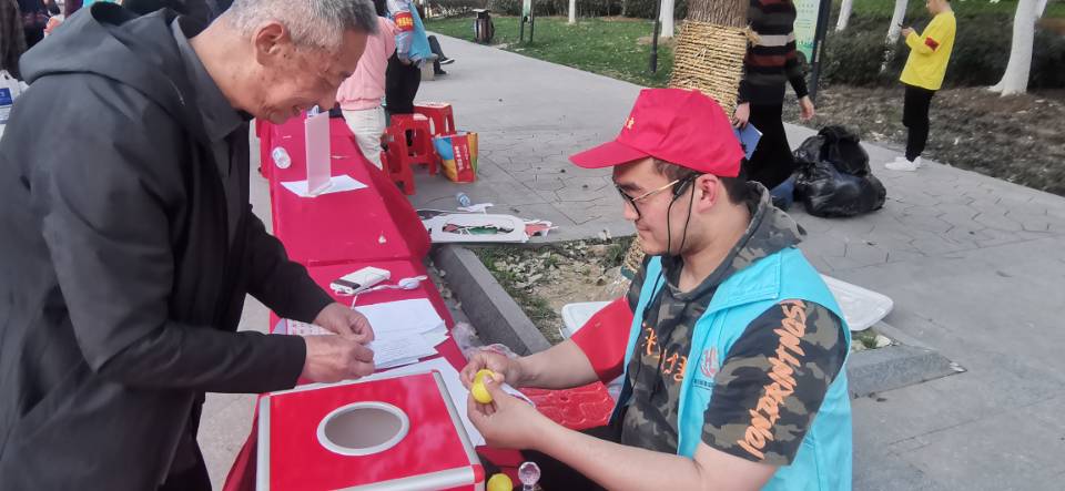 为了庆祝建党一百周年,丁岗社区举办了“红心传薪火,风采正当时”丁岗社区红色运动会。在活动开始前,志愿者们参与了现场的布置,如装订活动宣传板、活动规则板,拉活动横幅,摆放好桌子、椅子,放置好活动中需要的道具等等。每个小活动都会有两名志愿者负责,帮助党员们了解活动内容,引导党员同志们如何开展活动,并给党员同志们拍照。