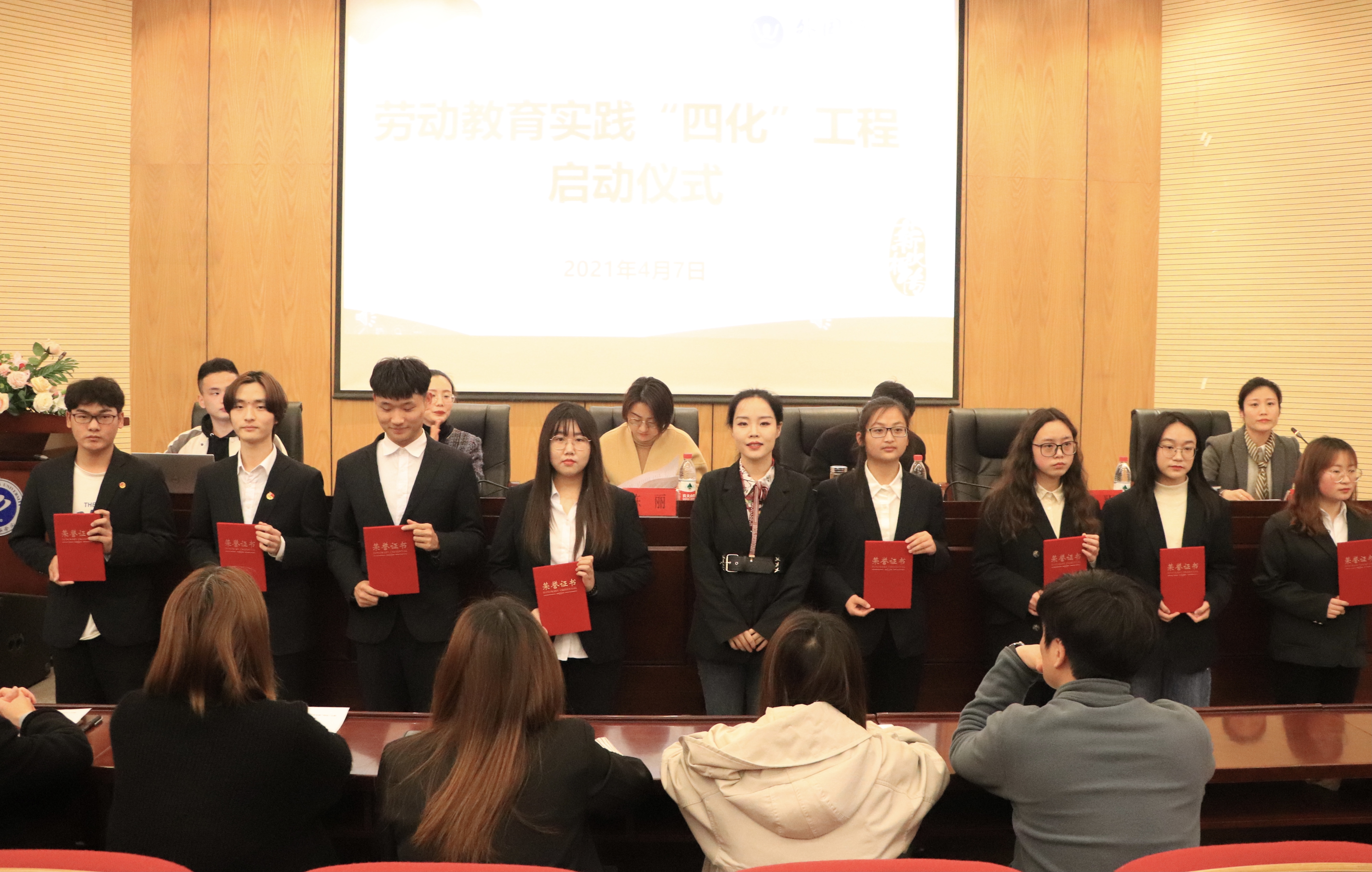 本网讯(通讯员:杨静 )4月7日是世界卫生日,为贯彻习近平总书记在全国教育大会上的讲话精神和《中共中央国务院关于全面加强新时代大中小学劳动教育的意见》,引导学生崇尚劳动、尊重劳动、热爱劳动,外国语学院在学术报告厅举行劳动教育实践“四化”工程启动仪式。会议邀请了校辅导员发展研究中心/劳动教育研究中心主任朱平、学生处/团委/校企合作办公室处长助理计羚,参会的还有外国语学院院长助理陈丽、全体学工人员和学生代表。