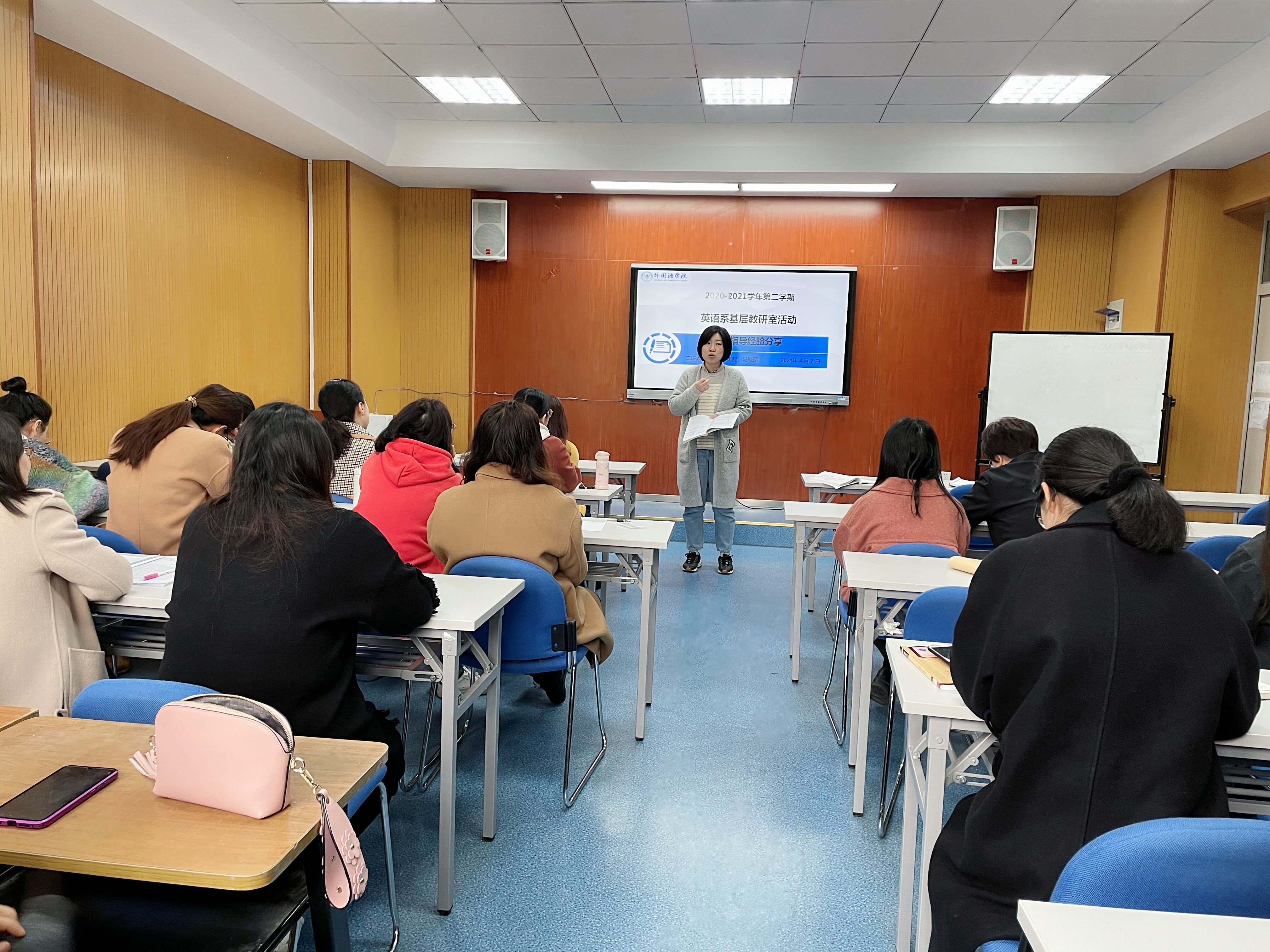本网讯(通讯员:王喆)为充分发挥学院学科竞赛指导教师团队协同作用,打造一支高水平学科竞赛指导团队,4月7日下午,外国语学院英语系开展了基层教研室第二次教研室主题活动——学科竞赛经验交流会。郭晓菊、马晓晴和王喆老师分别进行了经验分享,英语系全体教师参加了本次交流会,会议由英语系主任助理盛素雯主持。