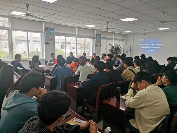 然后,学管秘书解寒静宣读倡议书,学生代表就试点工作进行表态。
