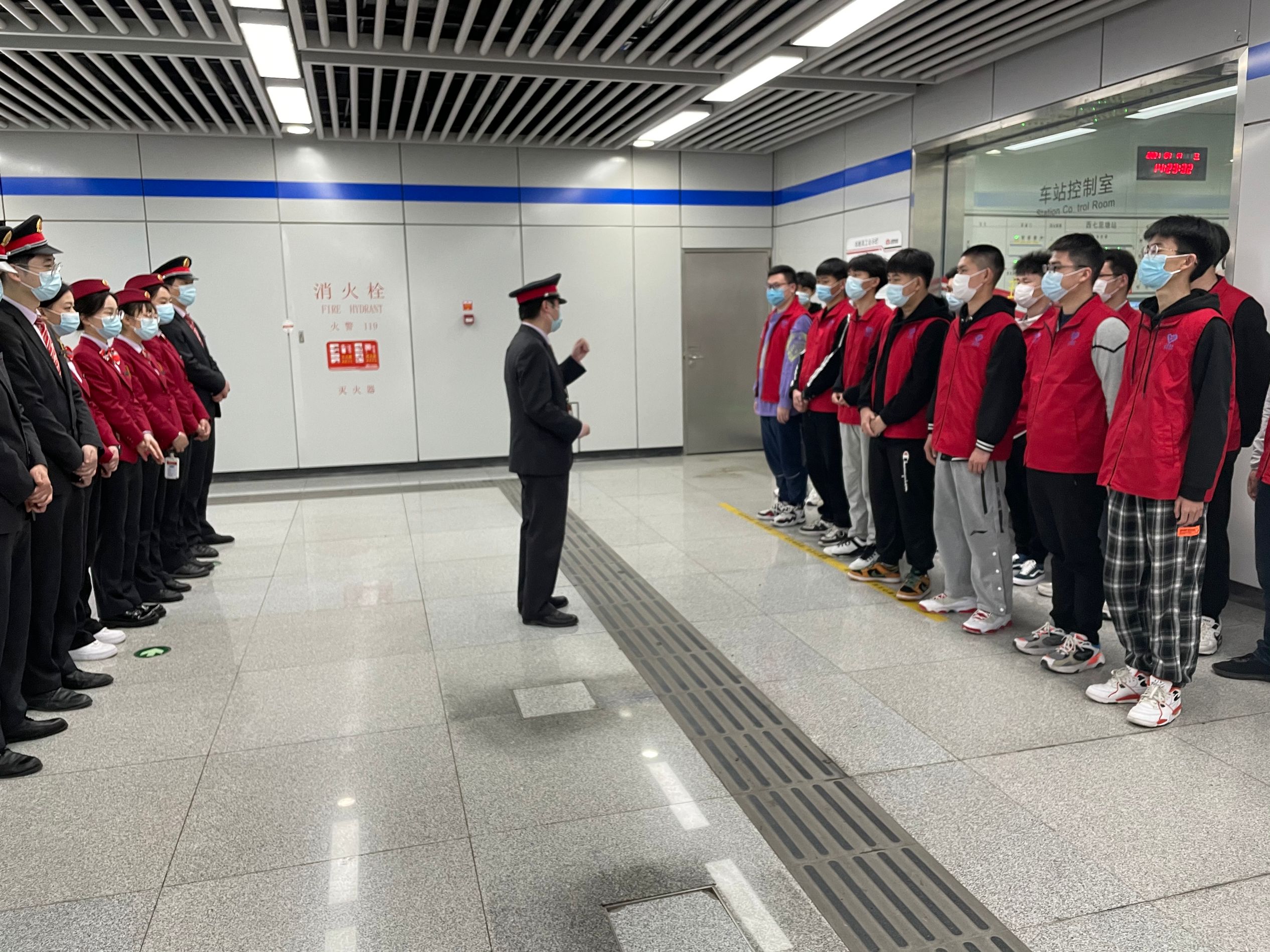下午,“艺初志愿服务队”的15名同学在辅导员高扬老师的带领下抵达西七里塘地铁站为广大乘客服务。志愿者们在地铁二号线工作人员的带领下进行了微型消防站的使用和接发列车的流程培训。