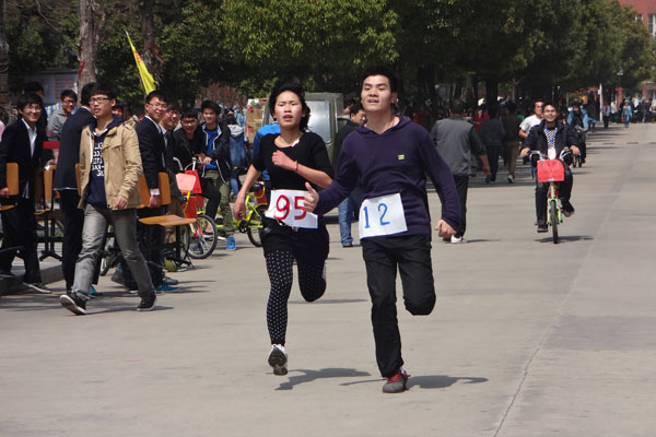 12点30分,环跑华园活动正式开始,100名参赛选手将从翰林广场出发,绕学校主干道环跑一圈,并回到起点处。为了保证参赛人员的多样性,此次参赛选手分别在10个二级学院选出,每院十名,五男五女。随着一声哨响,100名选手像离弦之箭朝前方奔去。来自继续教育学院的王鹏飞、吴洋洋分获男子、女子第一名。吴洋洋是威尼斯官网女子三项全能记录的保持者,在她看来,春天是个明媚的季节,适合运动,希望华园更多的大学生能够加入体育文化节的活动,展现自己的青春与活力。