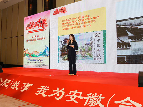 在展演现场,两位学子以“小切口”展现“大主题”。吴慧慧以安徽的水乡文化为切入点,用流利的英语声情并茂地讲述了水乡文化的文化传承与创新的故事,将安徽水乡的独特魅力展现得淋漓尽致。陈恺从合肥“科里科气”的城市基因出发,聚焦绿色科技,通过讲述合肥在新能源等领域的创新成果,以及这些科技成果如何与人文关怀深度融合,生动展现了一座现代化科技城市的人文温度。