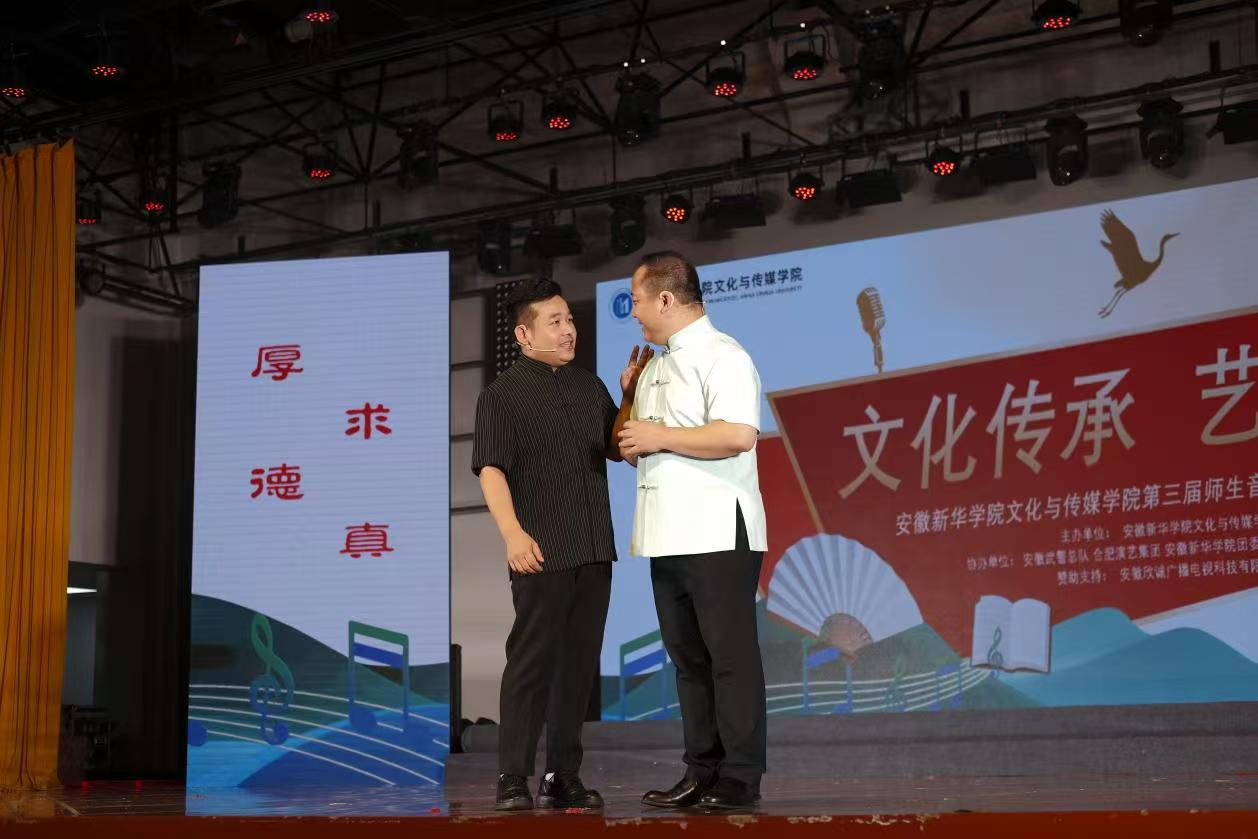 本网讯(通讯员:朱玉洁)为展现中华优秀传统文化的时代魅力,搭建校地合作的文化交流平台,为新时代美育工作注入创新活力,6月10日,“文化传承 艺彩飞扬”文化与传媒学院第三届师生音乐会暨校园文艺展演在学校大礼堂成功举办。本次音乐会由文化与传媒学院主办,学校团委、艺术学院、合肥演艺集团、省武警部队协办。集团领导、校领导、合肥演艺集团领导、安徽演讲协会负责人,以及学校各职能部门、二级学院师生代表出席了音乐会。