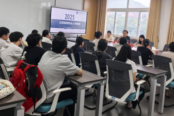 当天下午,各专业分别安排了不同类型的教育活动。工程管理专业在实验一号楼301会议室举行入学教育讲座,分为两个阶段:第一阶段由专业骨干教师顾广娟教授进行专业介绍,帮助新生初步了解工程管理专业;第二阶段由产业博士张淼就行业现状、专业就业前景等方面与新生进行座谈,增强学生的专业认同与职业信心。