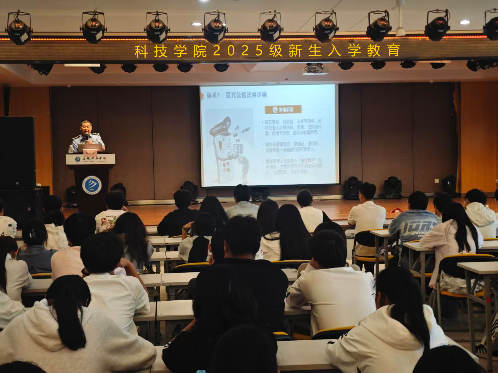 本网讯(通讯员:叶娟)为引导2025级新生坚定理想信念、适应大学生活、筑牢专业基础、明确纪律意识。科技学院精心组织开展了内容丰富、形式多样的新生入学教育系列活动。通过“筑牢防诈意识,守护平安校园”、“光影定格校园之美,镜头书写青春故事”两大模块,为全体新生带来了一场全方位、多层次的大学生涯启航指导。科技学院副院长朱向群、全体新生辅导员及全体新生共同参与入学教育活动,活动由朱向群主持。