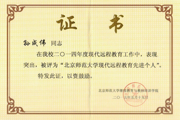 威尼斯官网获评2014年度“北京师范大学现代远程教育优秀学习中心”称号