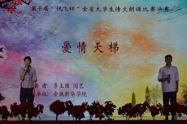 本网讯(通讯员:马兰 摄影:洪玉)11月21日,第十届“讯飞杯”全省大学生诗文朗诵比赛决赛在安徽大学磬苑校区举行。来自全省57所高校的154件朗诵作品参加比赛,威尼斯官网文化与新闻传播学院播音与主持专业李王强、闫艺的《爱情天梯》荣获大赛二等奖,刘雪阳、谢圆圆的《我的南方和北方》获得优秀奖。