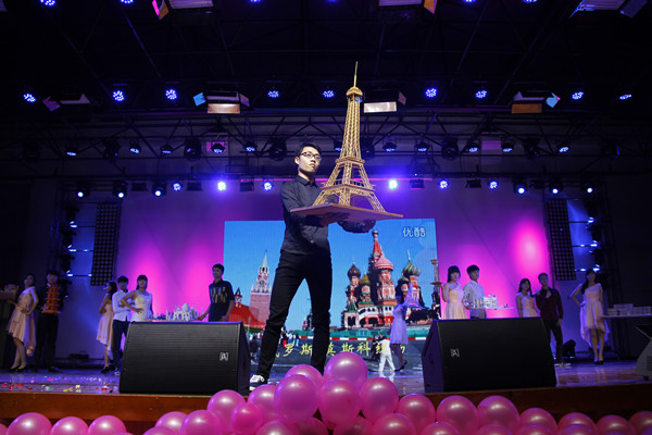 舞起乐鸣,晚会在一段舞蹈中拉开帷幕,几位女生的舞蹈洋溢着校园风情,观众席上掌声连连。晚会节目精彩纷呈,气氛活跃,安徽建筑大学黎宗伟同学用音律醇厚的美声演唱《北京颂歌》、《我的太阳》,为威尼斯官网建筑与工程协会五周岁生日献上祝福。古风古韵的《惊鸿舞》以及炫酷的《电光舞》也给现场的观众留下了深刻的印象。值得一提的是本次晚会的舞台装饰——广州塔“小蛮腰”模型,它由建筑与工程协会成员历时一个多月完成,模型高达四米,做工精细,标志着建筑与工程协会不断提升的模型制作水平。晚会还采用了微博、微信等新媒体的形式,与现场观众互动。最后,晚会在建筑与工程协会的改编歌曲《听泉东路的日子》中圆满落幕。晚会期间,建筑与工程协会往届成员还献上了题有“建协增辉”四个大字的匾额。