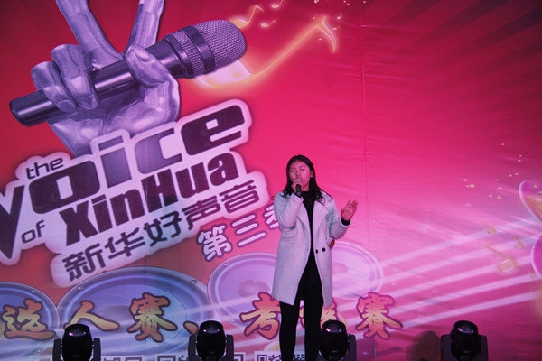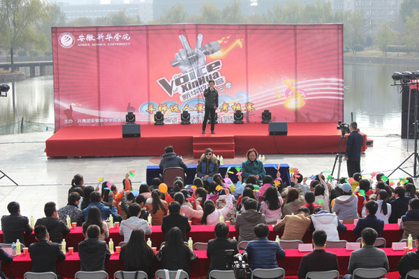 “新华好声音”歌王争霸赛是校团委重点打造的大型校园歌唱比赛,也是第八届“秋实华园”社团文化艺术节的重点活动。本次比赛由校团委主办,学生社团联合会承办,大学生艺术团及各学生社团协办。总决赛将于12月11日在校大礼堂进行。