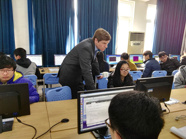 为了加强讲座效果,1月8日上午,Sylvain Jaume现场指导在场师生在VMware Player虚拟平台运行Python语言程序,并利用Python语言在2007年哥伦比亚博古它城市犯罪记录基础上进行犯罪率分析。最后,他要求在场学生完成相应的课后作业,并于1月9日上午进行随堂检查,就学生出现的问题进行了一一解答,指导学生学习和查阅关于大数据知识的途径和方法。他还对如何访问kaggle.com网站、如何参加计算机大数据分析建模方面的国际竞赛进行了详细说明,同时鼓舞在场学员要勇于学习、不断挑战、提升创新意识。