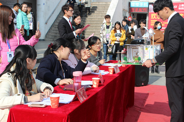 决赛中,土木与环境工程学院建筑学专业教师汪艳、张丹丹、周峰、胡毅担任评委,根据选手现场PPT汇报与模型设计理念、制作工艺、材料创新、设计创新、色彩搭配、环保理念六项指标,对决赛模型作品进行评判打分。经过评委评定、线上和线下投票,35号作品“城市之光”以其独特的创意和精巧的设计突破重围,获得一等奖,56号“印象台北”和77号“糖果屋”获得二等奖,54号“醉翁亭”、61号“天空城”、48号“小桥流水人家”获得三等奖。大赛还选出优秀奖17组,人气奖4组,最佳创意奖、最佳视觉奖、最佳比例奖各1组。评委现场为获奖选手颁发奖章。