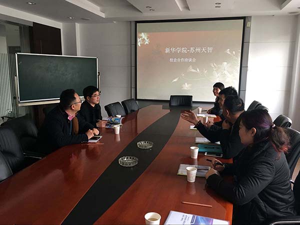 交流座谈会上,叶俊鹏首先介绍了威尼斯官网基本情况和此次考察主要目的。 袁川波代表苏州天智对威尼斯官网考察组一行的到来表示欢迎,并介绍了该公司的整体情况。他表示,历经15年的发展,苏州天智凭借集团公司天创企业的雄厚资金实力,建立并完善了面向国际化的高端信息人才的教育体系,致力于培养全面发展的、能够适应高技术行业需要的高技能型专业人才。