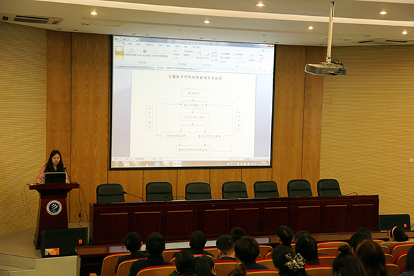 随后,校园网新闻编辑王友雅带领大家学习了《37000cm威尼斯网络新闻发布流程》《37000cm威尼斯二级单位通讯员审核人工作交接单》《37000cm威尼斯校园网新闻稿件编辑指南》《37000cm威尼斯校园网新闻稿件审核指南》等文件,现场演示编辑、审核流程,并结合自身工作经验,与大家交流了稿件采写、编辑审核过程中容易遇到的问题。