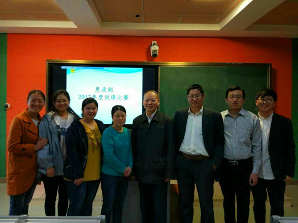 最后,思政部主任吴兆雪教授作总结发言并与参赛教师合影留念。吴兆雪指出,通过说课比赛的形式贯彻落实中央59号文件关于切实加强高校思政理论课建设的要求,提升高校思政理论课教师教学能力,增强教学的实效性和针对性,不断提高思政理论课教学的育人效果。