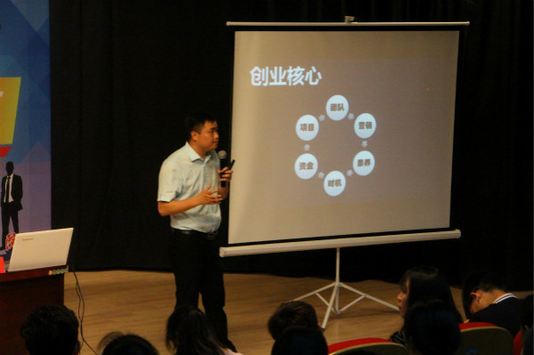 上午,此次活动的开幕仪式在新闻演播厅举行,商学院副院长王飞首先对各位企业嘉宾的到来表示热烈的欢迎。随后,吴浩以“新时期下的创业环境与商机”为主题,讲述了自己创业的心路历程。他以自身的创业经历为例,通过实例和数据向同学们分析了当今社会日趋激烈的创新创业形势与面临的“大数据”商业新环境,介绍了互联网+创新创业现状和未来、分析了大学生创新创业的困难和挑战、阐述了在“新时期”视角下多样化的职业发展空间和机遇,对如何修炼创新创业能力提出了宝贵的专业意见和建议,鼓励各位同学将创新创业想法转化为实际行动,积极投身到大学生创新创业的浪潮中去。最后,许良传还与现场学生进行了互动,逐一回答了大家的提问。