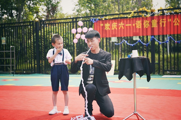 本网讯(通讯员:万媛媛,摄影:宋兴峰)唱歌、跳舞、变魔术、送礼物……在2017年“六一”儿童节来临之际,外国语学院“语你童行”志愿者团队联合巢湖中庙街道为当地的留守儿童献上一场别开生面的“六一文艺汇演”,与他们共同度过一个快乐的“六一”儿童节。外国语学院副院长周景、巢湖中庙街道党工委副书记王宣国、巢湖爱生堡云水湾幼儿园园长刘菊华、中庙街道团工委书记王超、外国语学院学管秘书万媛媛及当地留守儿童观看了此次演出。