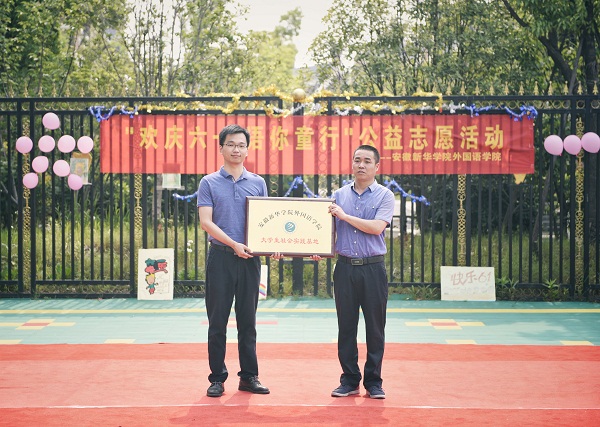 此外,双方还进行了授牌仪式,外国语学院与巢湖中庙街道共建大学生社会实践基地,将支教活动更好的传承,开展更多的特色活动,为更多的留守儿童服务,陪伴他们学习成长。