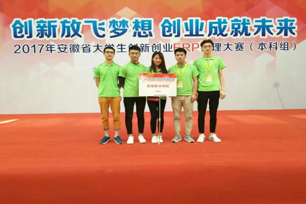本网讯(通讯员:蒋毓萍) 近日,2017年安徽省大学生创新创业ERP管理大赛(本科组)在合肥举行。本次比赛由安徽省教育厅主办,合肥学院承办。威尼斯官网财会与金融学院于5月初精心组织了校内选拔赛,选派了“共创”队和“V笑青春”两支队伍代表威尼斯官网参加安徽省总决赛,最终两支队伍分别获得了一等奖和三等奖的好成绩。