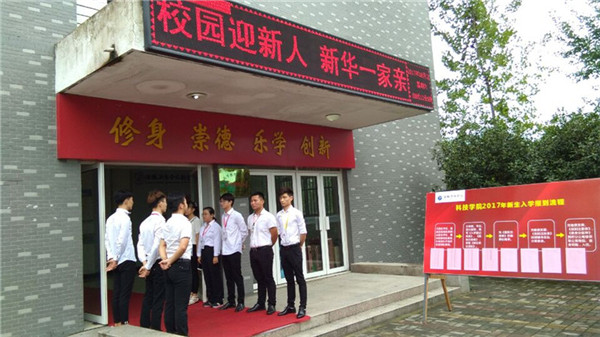 按照迎新方案,今年科技学院在发放新生录取通知书的同时一并发放入学指南,明确新生入校需要办理的手续,公布各项事宜和咨询电话。新生报到日,科技学院在学校北大门设立引导服务台,帮助新生完成报到。同时,科技学院执行院长黄德垚带领全体管理人员来到报到现场,引导新生办理各项报到手续,现场解决同学们的疑问及困难。学生会助理团成立“迎新生志愿服务队”,用学长学姐的热情、志愿者的爱心去迎接每一位新同学的到来,从报名处到公寓楼,处处涌动着他们忙碌的身影,拉皮箱、搬行李、找宿舍,忙得不亦乐乎。