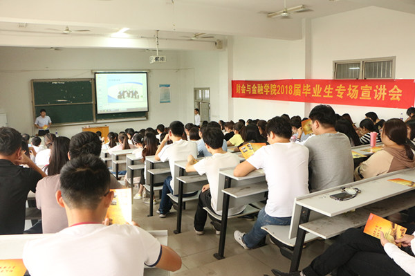 参加宣讲会的企业涵盖了金融、保险、银行等行业。各企业为招贤纳士都进行了充分的准备,他们详细介绍了本企业的市场业务、管理体系和企业文化等方面情况,并重点介绍了企业的校园招聘政策和人才培养机制。现场互动问答环节中,企业宣讲团队从薪资福利、成长空间以及工作环境等方面解答了同学们的提问。