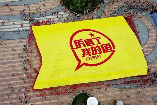 本网讯(通讯员:郑泰、孙晗 摄像:聂多伟)“十一”将近,为欢庆祖国68岁生日,喜迎十九大的召开。响应共青团合肥市委员会号召,9月23日上午,电子通信工程学院300余名师生赴万达脸谱广场参加“万人拼国旗”活动,用行动表达爱国热情,为祖国诞辰68周年献礼。